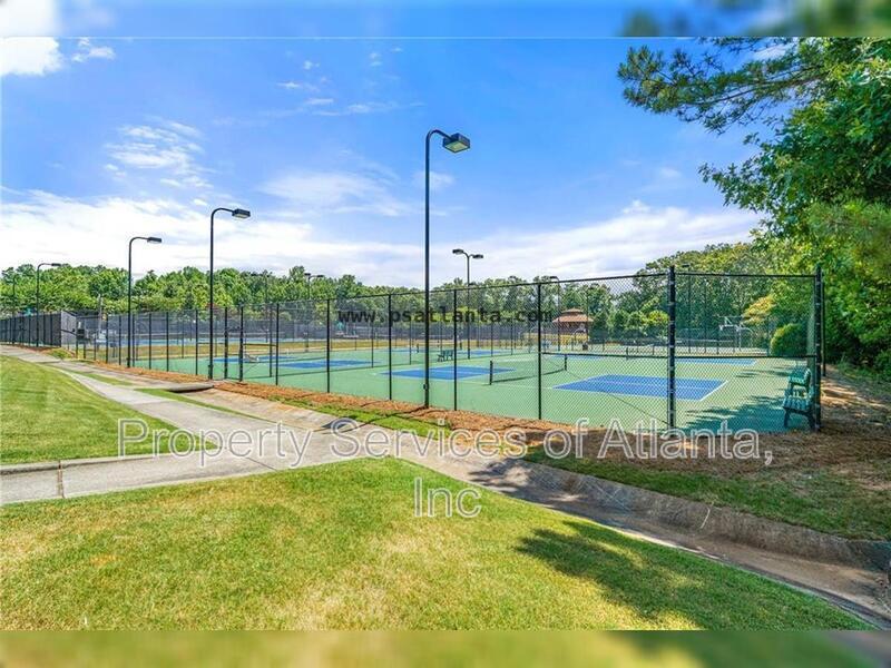 Two-story single family home with entry foyer, half bath, kitchen with all black appliances (gas stove), pantry, dining room, family room with gas fireplace and ceiling fan with access to a back patio. There is also access to the 2-car front entry garage. The upper level features a laundry room with washer/dryer included. There are three spare bedrooms and full hall bath with tub/shower combination. Large master with trey ceiling. Master bath with dual vanities with garden tub and separate stall shower. This home is located in a residential community that features a clubhouse, walking trails, pool, and tennis courts. Close to downtown Atlanta and minutes to shopping plazas, Arbor Place Mall and lots of restaurants!