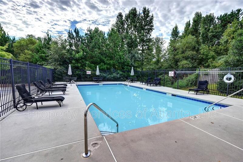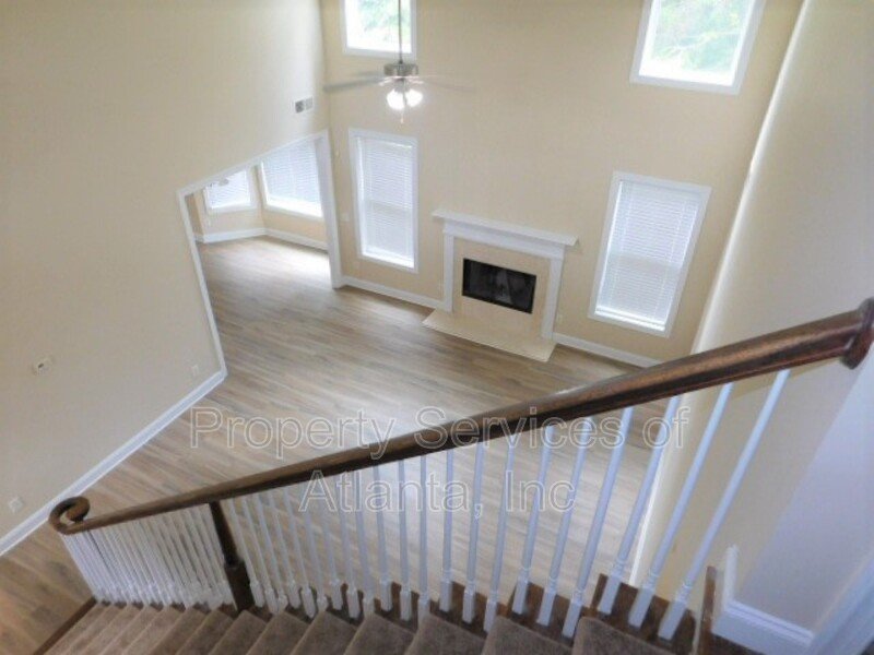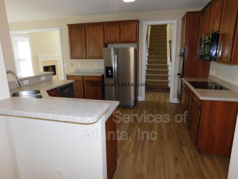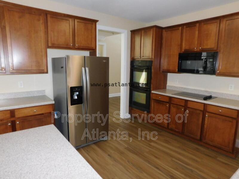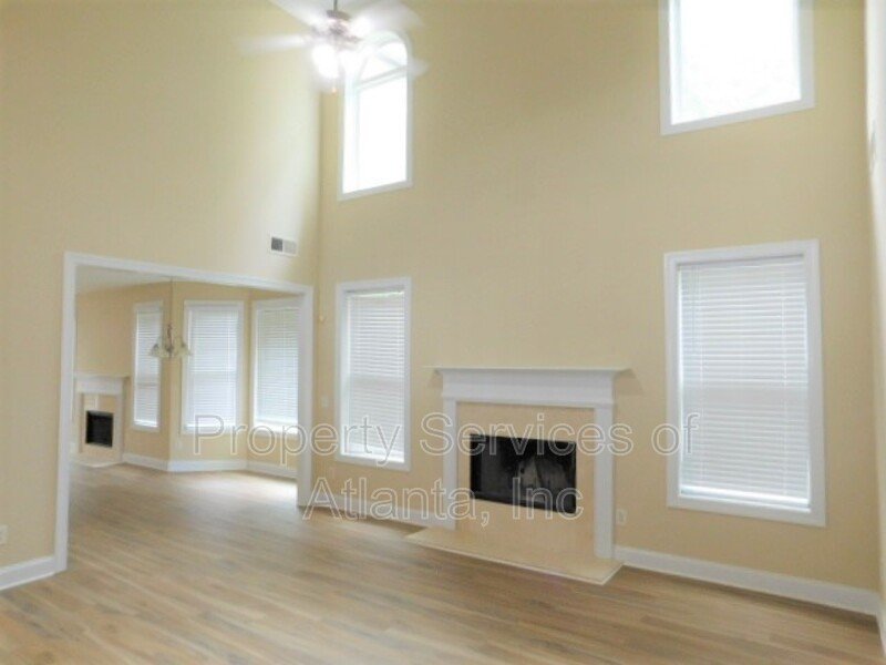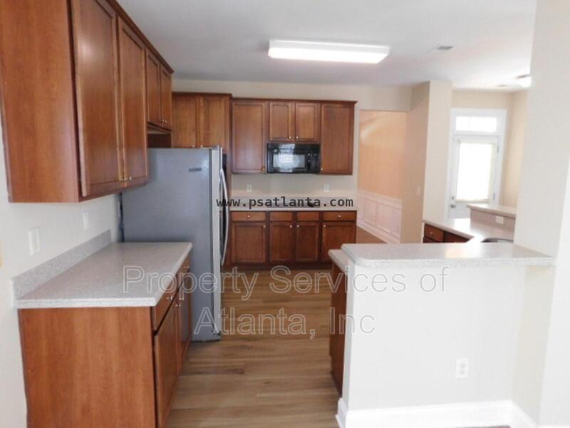 Gorgeous home with covered front porch. The entry foyer leads to a separate dining room, a 2-story family room with fireplace, kitchen with lots of cabinets and counters, all appliances (refrigerator, microwave, dishwasher, electric cook top, double wall ovens), island with breakfast bar, separate desk area, walk-in pantry, breakfast area with access to the rear patio, and keeping room with another fireplace. There is a spare bedroom on the main level with a full hall bath with tub/shower combination and access to the 2-car front entry garage with auto-opener. Upper level features two spacious spare bedrooms that is connected to a Jack & Jill bathroom with tub/shower combination. There is a third spare bedroom with an attached full bath with tub/shower combination. Master suite has trey ceiling. Master bath has dual vanities, jetted tub, separate shower with enclosure, and large walk-in closet. Laundry room with cabinets, utility sink, and washer & dryer included (owner will not repair or replace these appliances). Very spacious home with an open floor plan for the major living areas on the main level. Community with playground and pool. Great location. Close to I-285, shopping & dining.