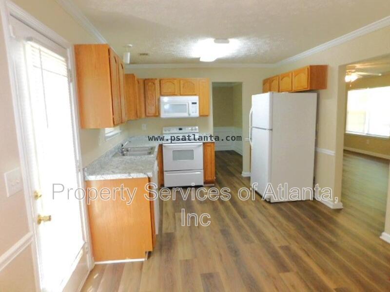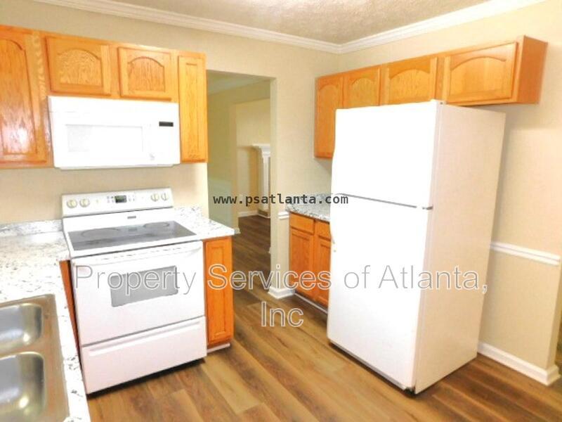 Lovely 2-story home located in a subdivision minutes from Stone Mountain & Hwy/Hwy 78! This home invites you from a covered front porch into a living room with gas fireplace. There is a formal dining room, a half bath, and a laundry closet with washer/dryer hook-ups. The kitchen has Oak cabinets, new Formica counters, breakfast area with access to the level backyard and patio. There is a refrigerator, dishwasher, electric stove and microwave. The upper level features a bonus/4th bedroom and two additional spare bedrooms, as well as a full hall bath with tub/shower combination. Large master with vaulted ceilings and master bath with dual vanities and separate garden tub/stall shower and walk-in closet. Main level has all new luxury vinyl planking. Close to shopping, restaurants, golf course and day care center.