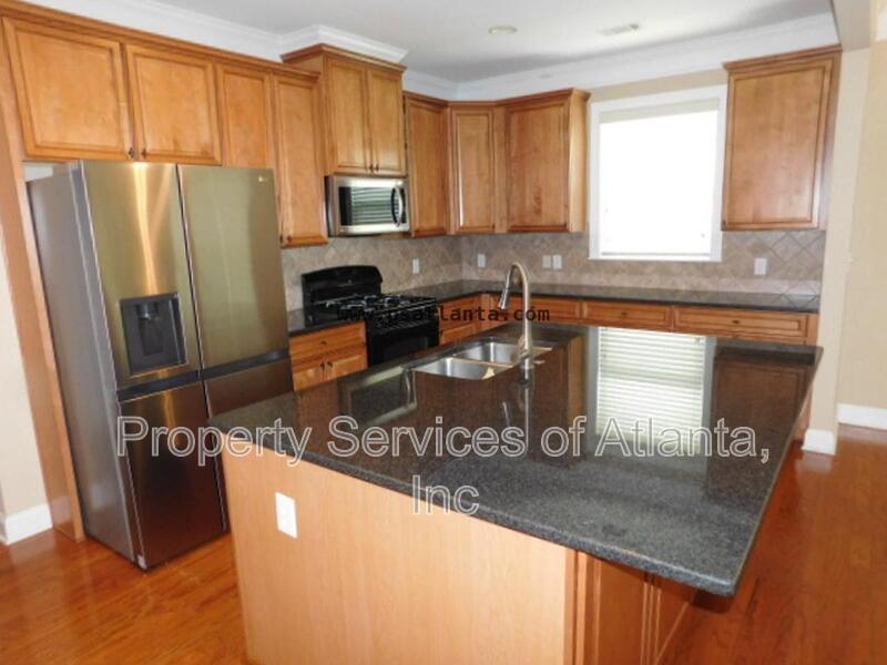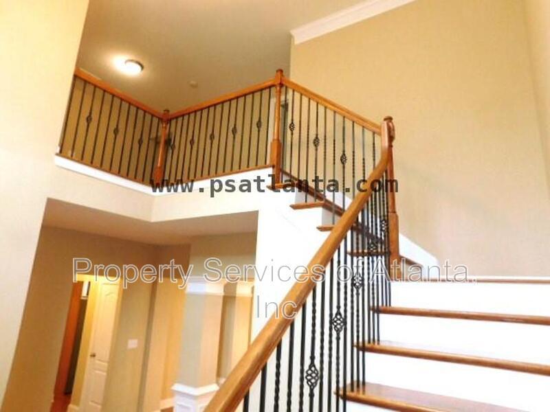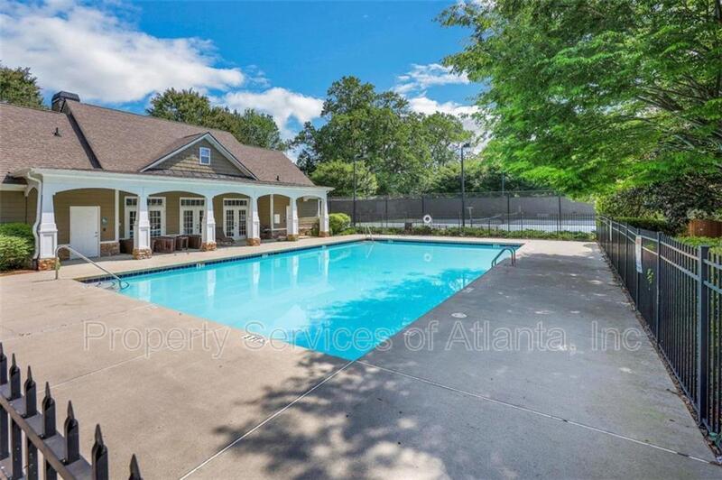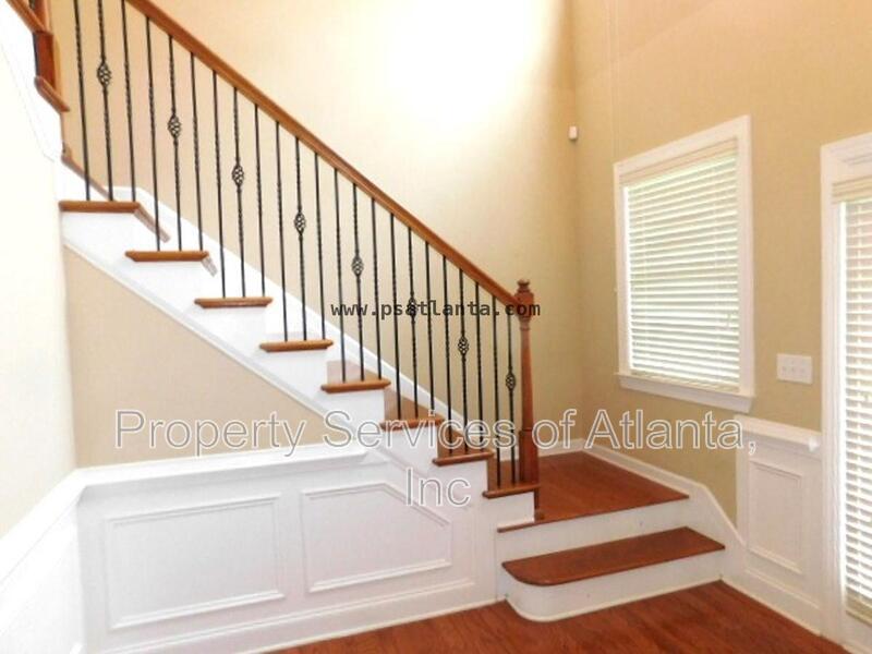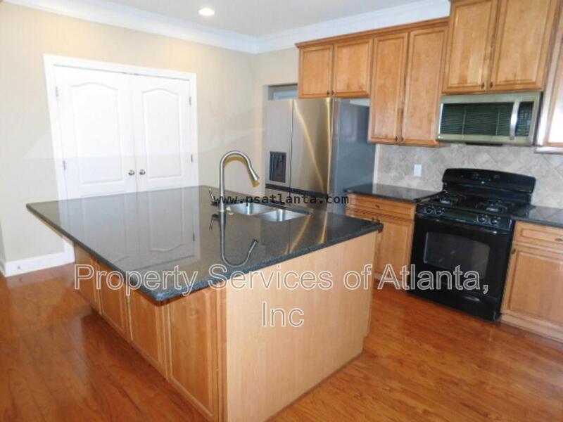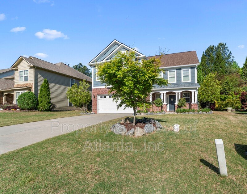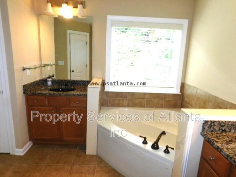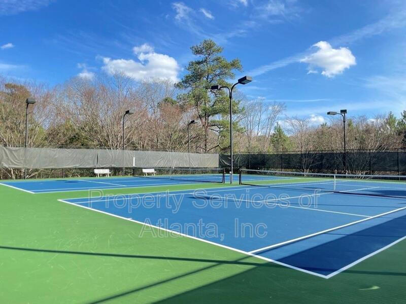 Enter this lovely home through a covered porch into a 2-story foyer. Main level has all wood flooring. There is a open floor plan that consists of a formal dining room, family room with gas log fireplace and ceiling fan, laundry room, half bath, and access to the 2-car front entry garage. The kitchen is spacious and has lots of cabinets, Granite counters, island with breakfast bar, panty, stainless appliances (gas stove), tile backsplash, breakfast area with access to the rear patio. Upper level features a loft area, three spacious spare bedrooms, one full bath with single vanity and tub/shower combination, a second full bath with dual vanities and tub/shower combination. The oversized master suite has a trey ceiling, ceiling fan, sitting area, and large walk-in closet. The master bath has dual vanities, tile floors, whirlpool tub and separate shower with enclosure. The property is located in a community with a clubhouse, pool, tennis courts and playground. Great location close to shopping, restaurants, retail outlets, Chattahoochee River, Bears Best Golf Club, and Johns Creek Emory Hospital. Owners will maintain the fertilization of the lawn. Tenants will be required to maintain all other aspects of the landscaping including the back hill and mulch. Lots of room, great schools, swim/tennis community, great location. This home has it all!!